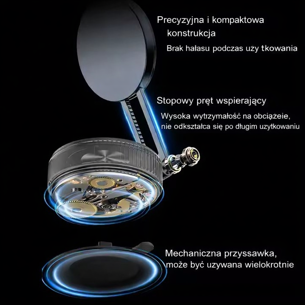 Podnieś komfort  dzięki zaawansowanemu uchwytowi do telefonu, który łączy w sobie elegancki design z mechaniczną niezawodnością. To nie jest zwykły uchwyt – to precyzyjnie zaprojektowane akcesorium dla osób ceniących jakość i funkcjonalność.